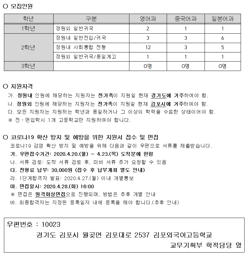 2020³â 4¿ù ÀüÆíÀÔÇлý ¸ðÁý °ø°í