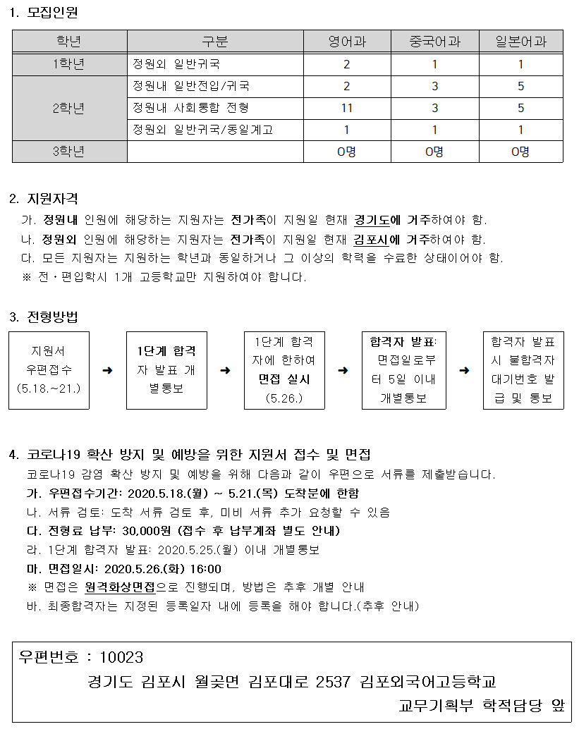2020³â 5¿ù ÀüÆíÀÔÇлý ¸ðÁý°ø°í
