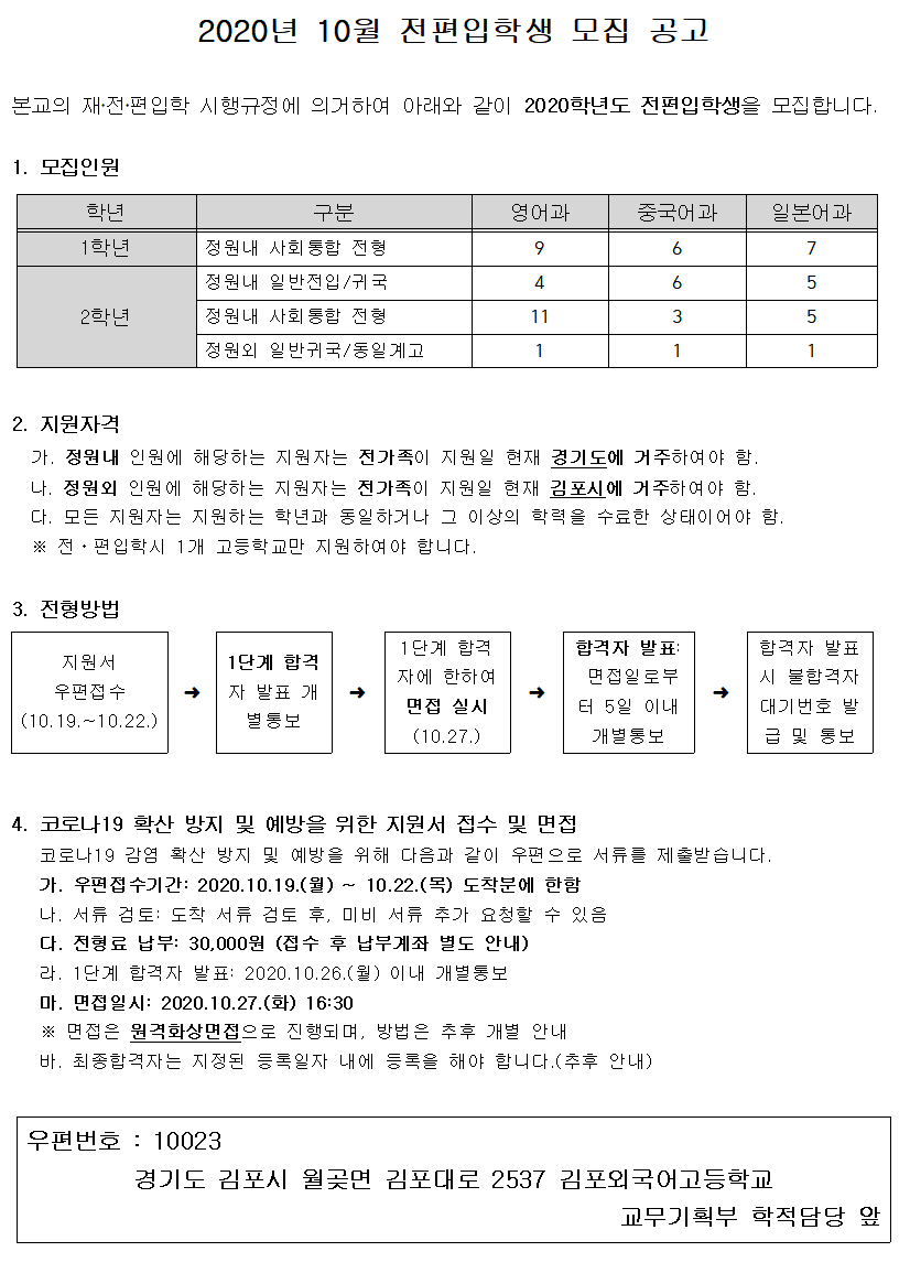 2020³â 10¿ù ÀüÆíÀÔÇлý ¸ðÁý°ø°í