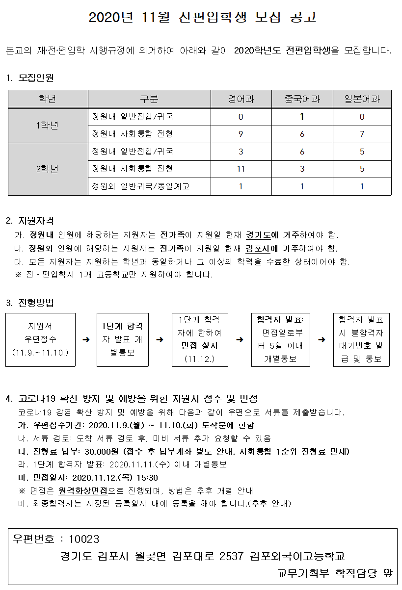 2020³â 11¿ù ÀüÆíÀÔÇлý ¸ðÁý°ø°í