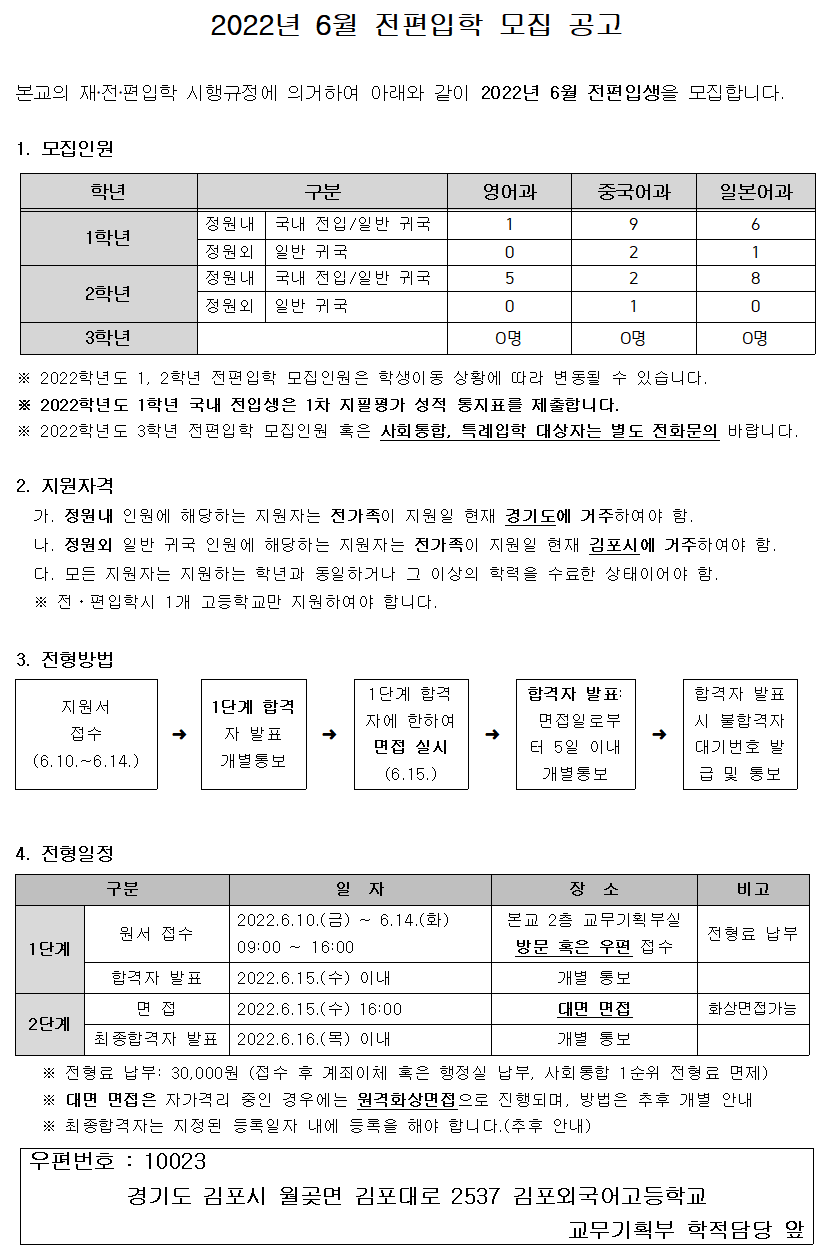2022³â 6¿ù ÀüÆíÀÔÇÐ ¸ðÁý°ø°í