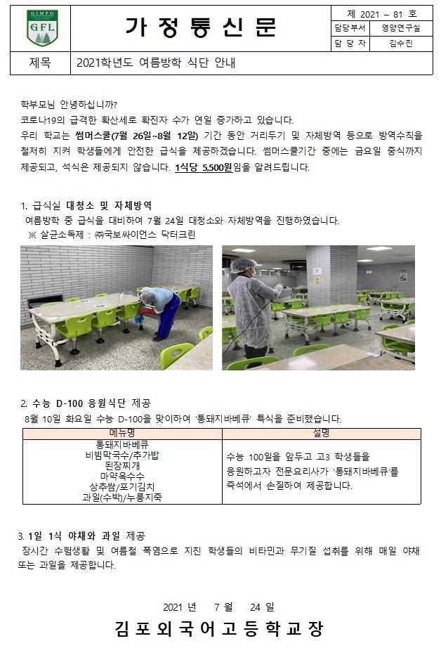 2021Çг⵵ ¿©¸§¹æÇÐ ½Ä´Ü ¾È³» °¡Á¤Åë½Å¹®