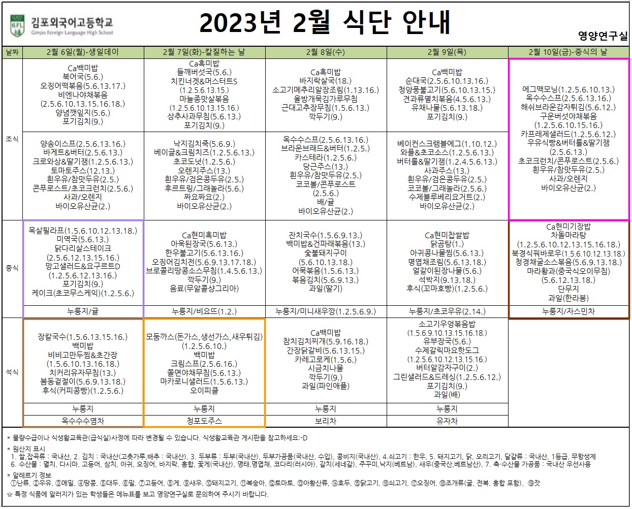 2023³â 2¿ù ½Ä»ýȰ ±³À° ¹× ½Ä´Ü ¾È³»