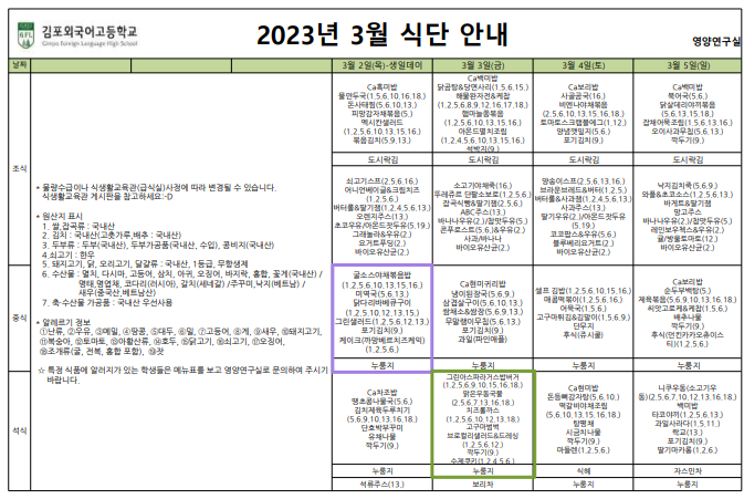 2023³â 3¿ù ½Ä»ýȰ ±³À° ¹× ½Ä´Ü ¾È³»