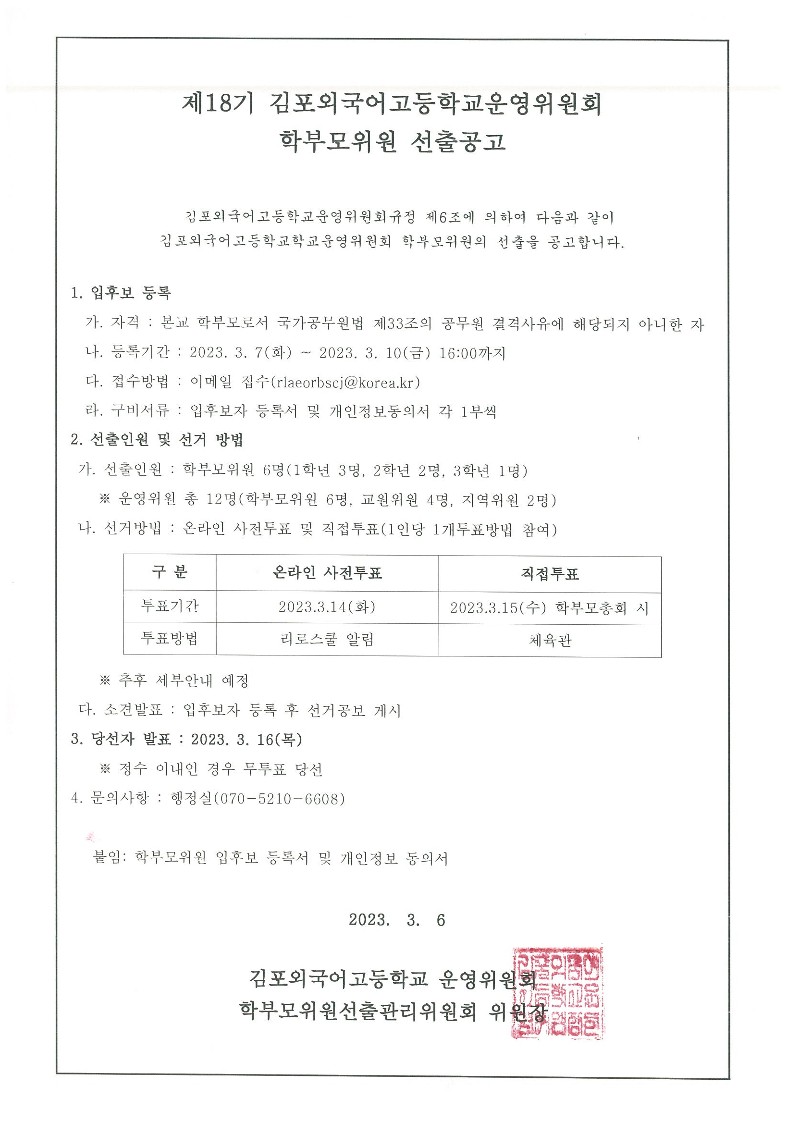 2023³â Á¦18±â Çб³¿î¿µÀ§¿øÇкθðÀ§¿ø¼±Ãâ °ø°í