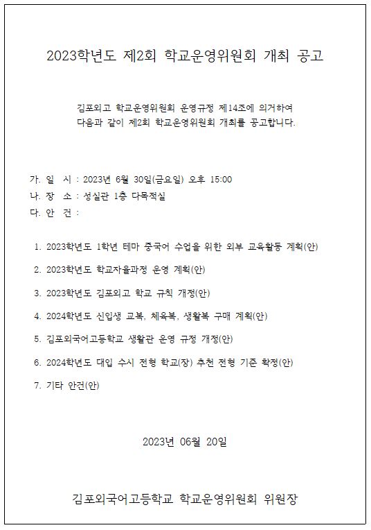 2023Çг⵵ Á¦2ȸ Çб³¿î¿µÀ§¿øÈ¸ °³ÃÖ ¾Ë¸²