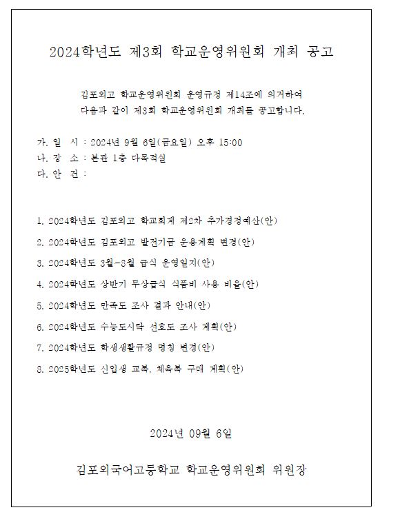 2024Çг⵵ Á¦3ȸ Çб³¿î¿µÀ§¿øÈ¸ °³ÃÖ ¾Ë¸²
