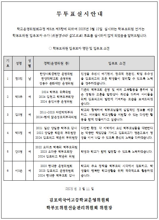 2025Çг⵵ Á¦20±â ±èÆ÷¿Ü±¹¾î°íµîÇб³¿î¿µÀ§¿øÈ¸ ¹«ÅõÇ¥ ½Ç½Ã ¾È³»