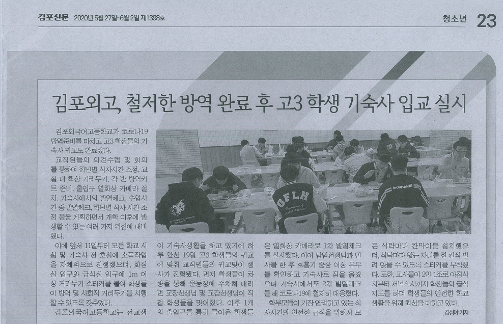 [±èÆ÷½Å¹®] ±èÆ÷¿Ü°í, öÀúÇÑ ¹æ¿ª ¿Ï·á ÈÄ °í3 Çлý ±â¼÷»ç ÀÔ±³ ½Ç½Ã