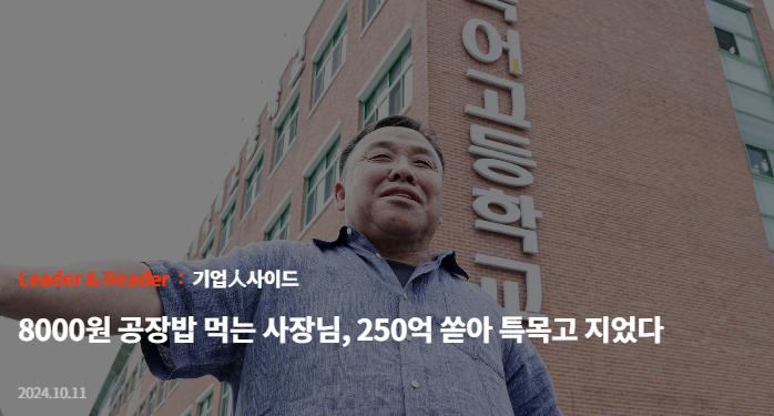 200¾ï¿ø ³Ñ´Â µ·À» µé¿© Çб³¸¦ ¼¼¿ì°íµµ »çȸÀû ÁöźÀ» ¹ÞÀº °ÍÀÌ´Ù. À̶§µµ Àüº´µÎ ÀÌ»çÀåÀº û°èõÀ¸·Î Ãâ±ÙÇß´Ù. ´º½º¸¦ ÁöÄѺ¸¸é¼µµ Æò¼Òó·³ Á¦Ç° ÁÖ¹®À» ¹Þ¾Ò´Ù.