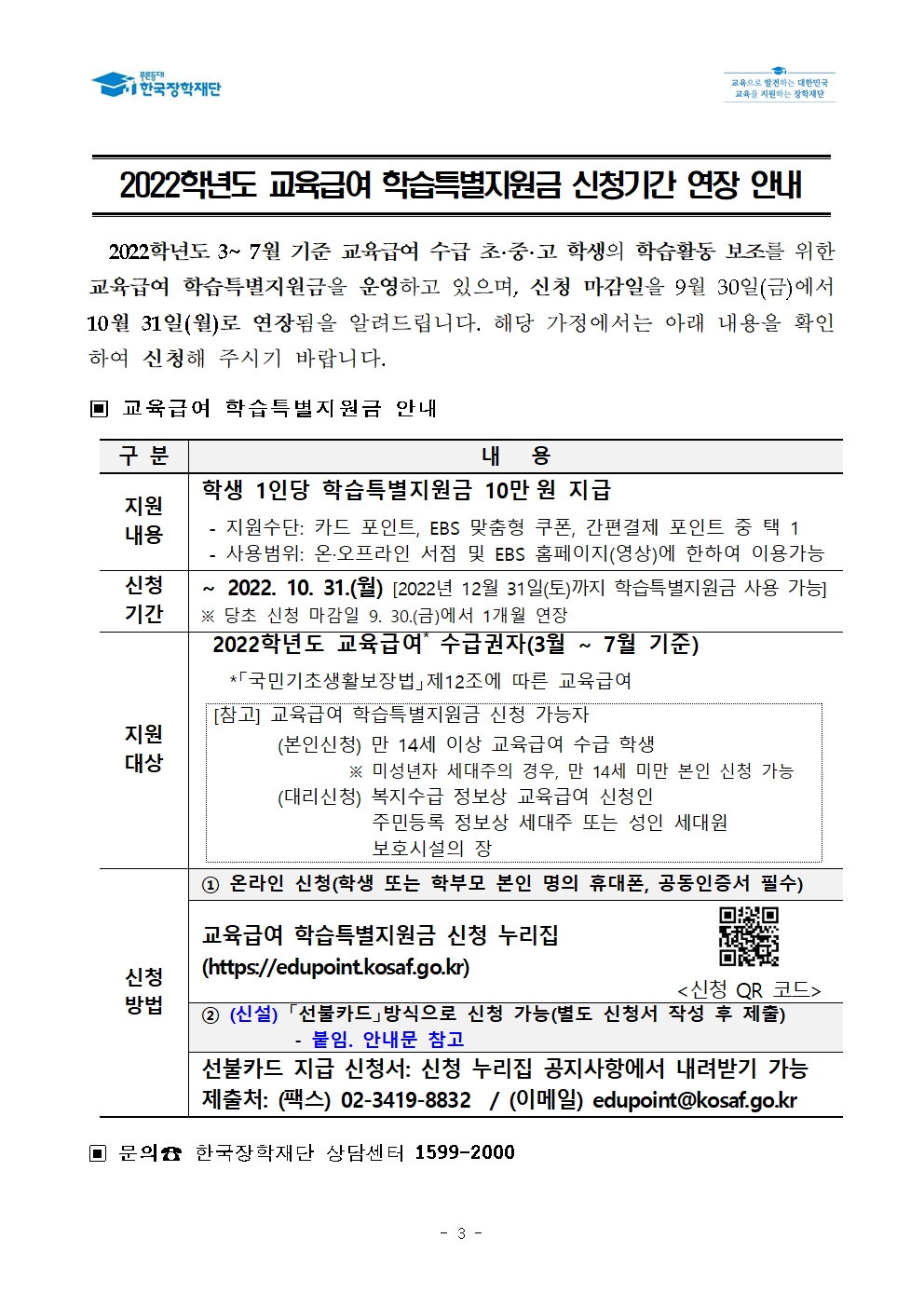2022³â ±³À°±Þ¿© ÇнÀƯº°Áö¿ø±Ý ½ÃÇà°èȹ º¯°æ ¹× ½Åû ¾Ë¸²