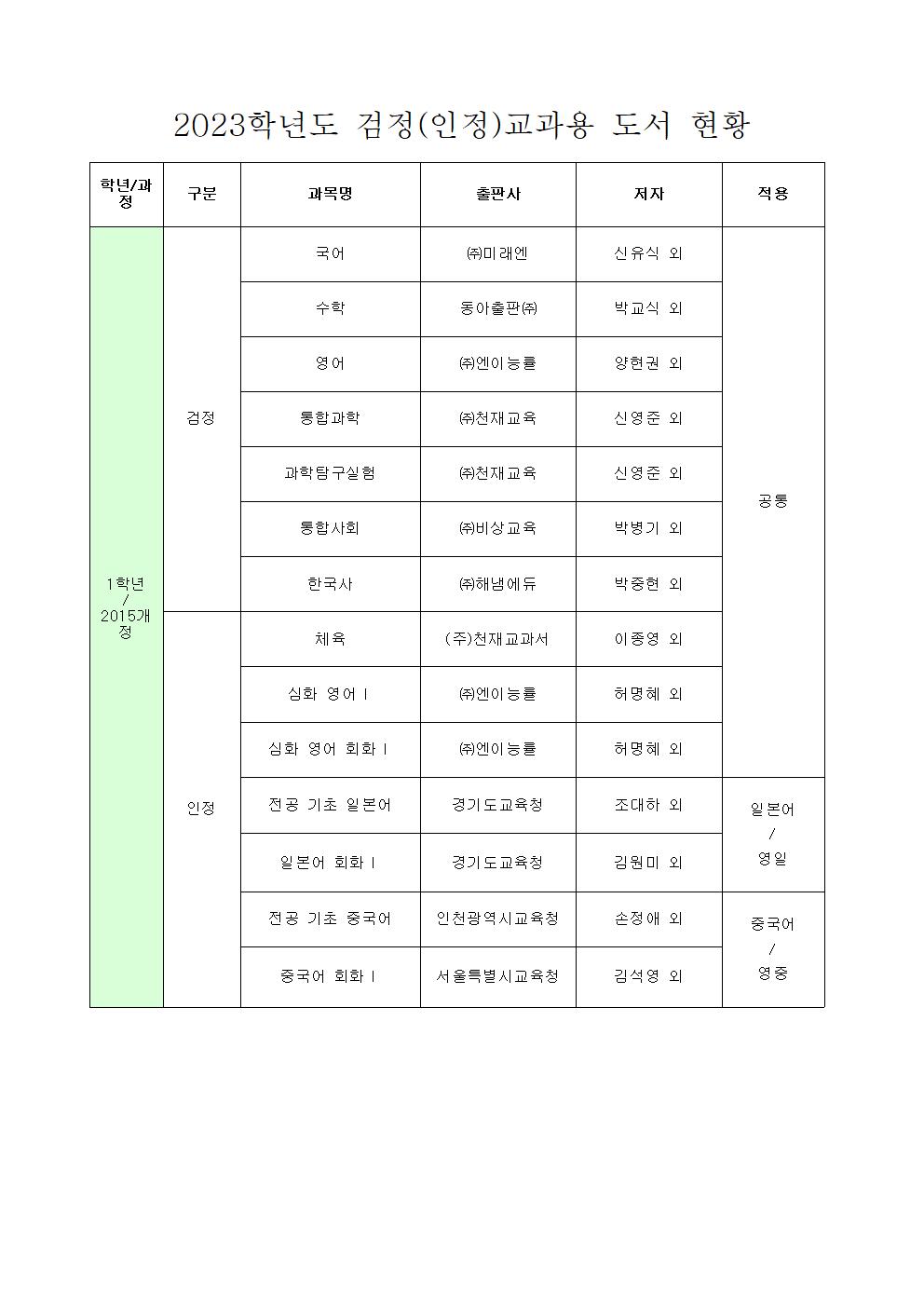 2023Çг⵵ Çг⺰ ±³°ú¿ë µµ¼­ ¸ñ·Ï ¾È³»