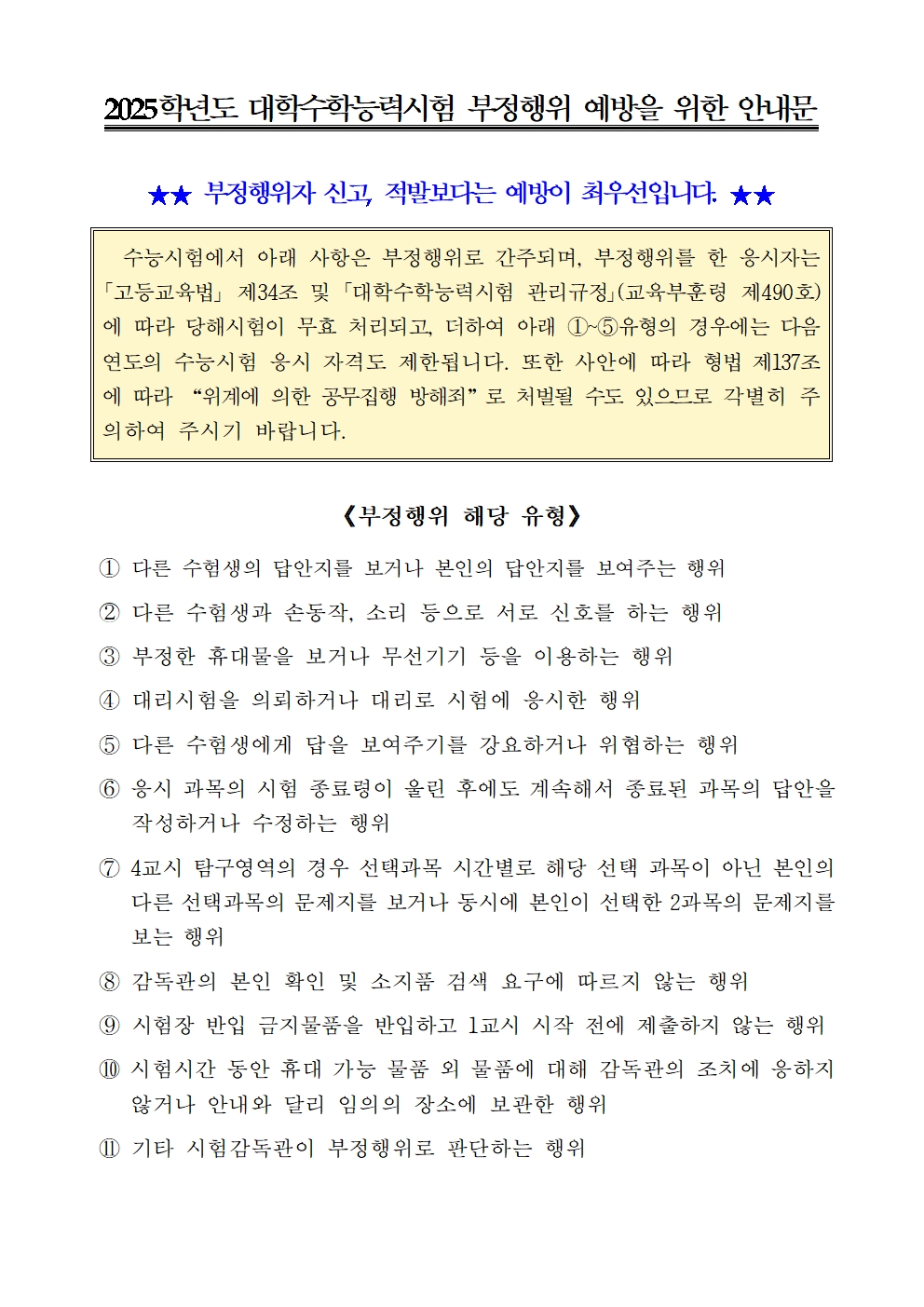 2025Çг⵵ ´ëÇмöÇдɷ½ÃÇè ºÎÁ¤ÇàÀ§ ¿¹¹æÀ» À§ÇÑ ¾È³»¹®
