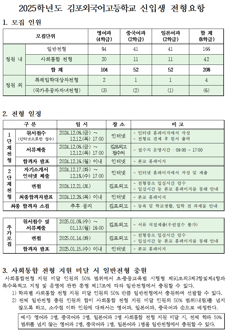 2025Çг⵵ ±èÆ÷¿Ü°í ½ÅÀÔ»ý ÀÔÇÐÀüÇü¿äÇ×