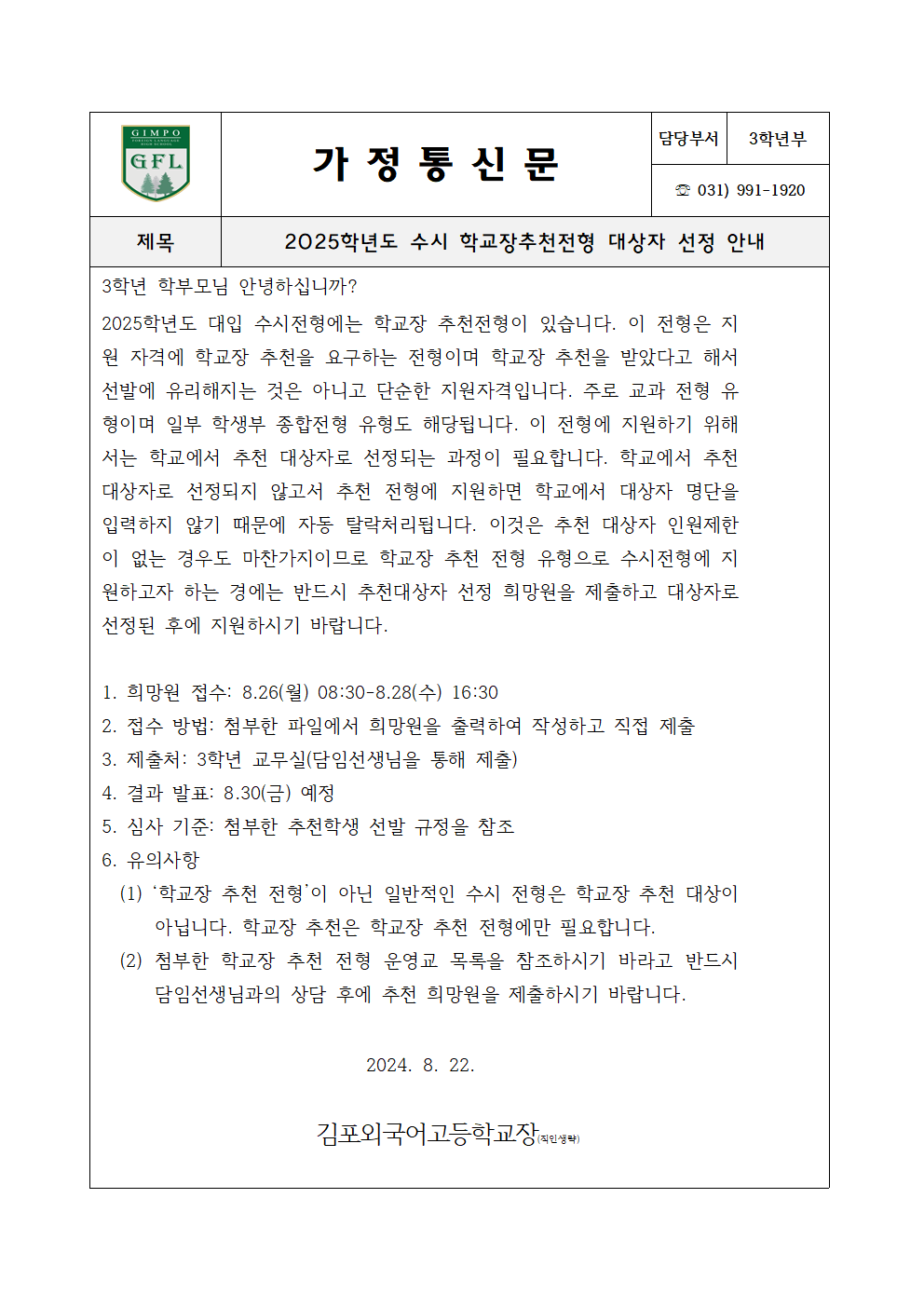2025 ¼ö½Ã Çб³Àå ÃßõÀüÇü ¾È³»